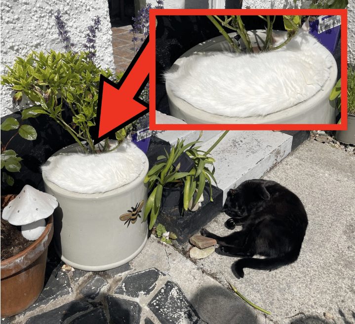 Pour celles et ceux qui commencent à tourner en boucle — ce qui est tout à fait compréhensible —, voici un éclairage utile. L’arrière-plan de la photo présente un pot de fleurs de couleur claire. Ce simple élément, qui semble anecdotique, peut attirer l’œil des observateurs les plus minutieux. Sa texture légèrement irrégulière évoque des jeux d’ombre et de lumière… ou peut-être la forme d’un animal tapi dans l’immobilité. Une fois cette silhouette identifiée, tout s’éclaire : le second félin était présent depuis le début, parfaitement dissimulé tel un expert en camouflage.