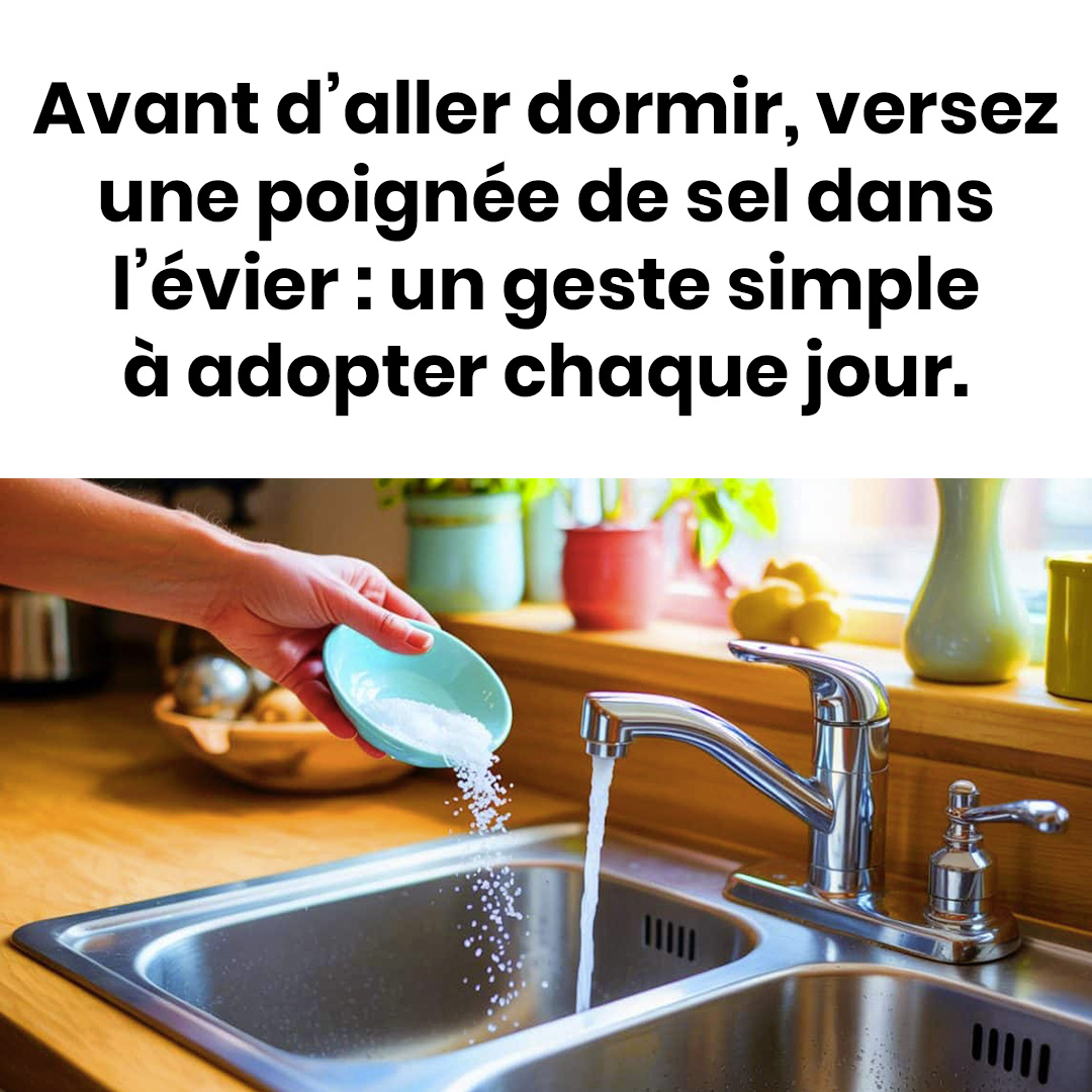Et si je vous disais qu’un geste tout simple peut révolutionner votre routine du soir ? Avant de vous glisser sous la couette, versez une bonne quantité de sel dans votre évier. Ce petit minéral, si banal en apparence, agit comme un nettoyant puissant : il dissout les graisses, prévient les bouchons et combat les mauvaises odeurs persistantes. Pour un résultat optimal, faites couler un filet d’eau chaude par-dessus — vos canalisations vous remercieront !